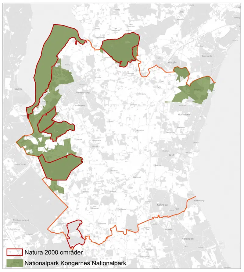 Fredensborg Kommune har efter planloven ansvaret for i kommuneplanen at udpege områder i det åbne land til naturområder med særlige naturbeskyttelsesinteresser, herunder eksisterende Natura 2000-områder på land og andre beskyttede naturområder samt økologiske forbindelser, potentielle naturområder og potentielle økologiske forbindelser. Desuden skal Fredensborg Kommune fastlægge retningslinjer, der sikrer værdierne, og beskriver prioritering af kommunalbestyrelsens naturindsats inden for Grønt Danmarkskort.
